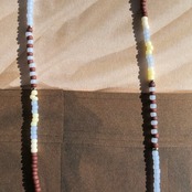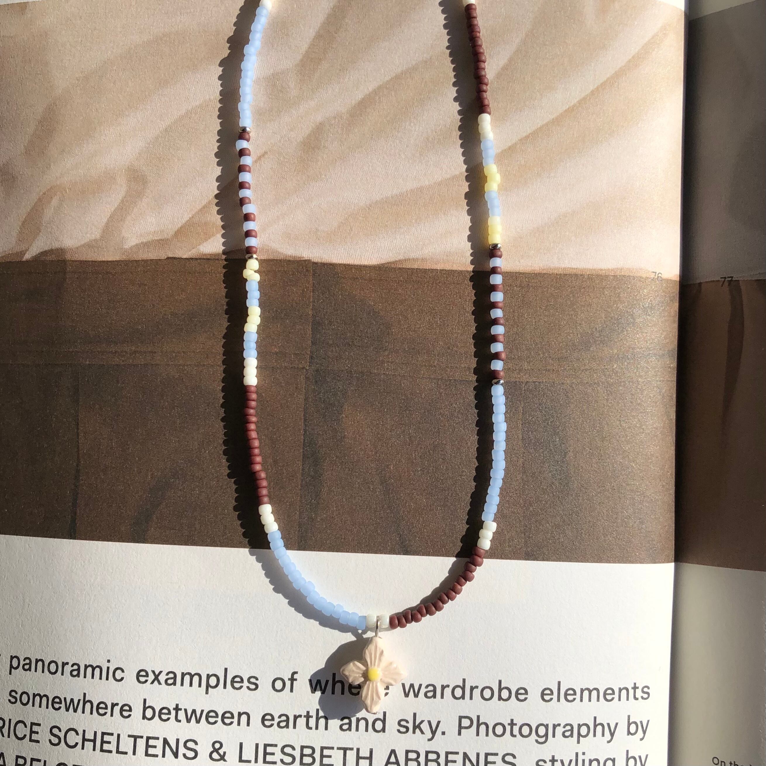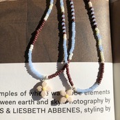 透け感のある水色とマットなブラウンを組み合わせたビーズネックレス。