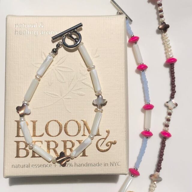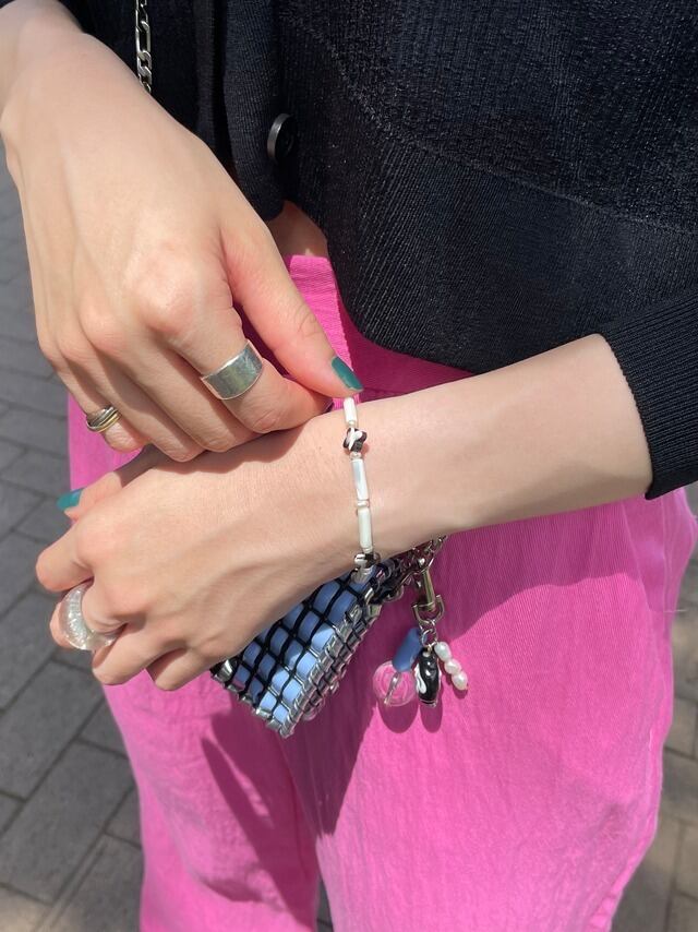 小さめのパーツを使用しているので、大きめのバングルやチェーンのアクセサリーと重ね付けしてもかわいいです。♡